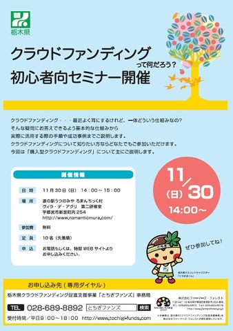 「クラウドファンディングって何だろう?初心者向セミナー」開催のお知らせ