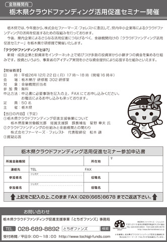 <金融機関向>12/22☆栃木県クラウドファンディング活用促進セミナー開催