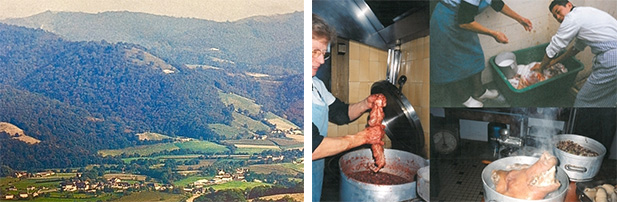 僕のいたバスク地方のレストランでは、ひと冬を越すために11月上旬からスタッフ総出で、豚一頭分を保存食用に様々な加工をします。例えば生ハム サラミ チョリソー ソーセージ ベーコン リエット テリーヌ…。ここでの貴重な経験が今の僕の原点です。